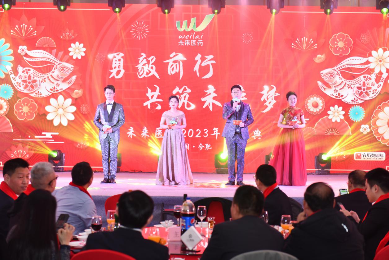 2023年是未来医药实现未来三年战略目标的启动年。春节的喜庆与热闹还萦绕于心,而未来医药的新征程已经开启,1 月 29 日~31 日,未来医药2023年新年年会在合肥上上座酒店成功举办。年会包括公司大会、营销会议及培训、颁奖晚会、文艺演出及答谢晚宴,以“勇毅前行,共筑未来梦!”为主题贯穿始终,进一步增进广大员工的凝聚力,营造新春氛围,重新展现未来医药疫情前的良好精神面貌,共同为实现美好未来的梦想而不懈奋斗!