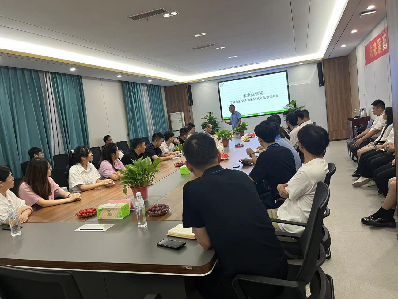 为促进新员工快速融入公司,搭建沟通交流平台,营造良好的文化氛围,进一步增强新员工的归属感,2023年7月28日,公司人力资源管理运营中心组织开展了“遇见未来*预见美好未来”为主题的新入职员工座谈会,邀请公司董事长赵立军先生和药品营销控制管理中心总经理王有军先生共同参加此次座谈会,一起欢迎29位新同事的到来,祝贺他们选择未来,加入未来,成为未来大家庭的一员。